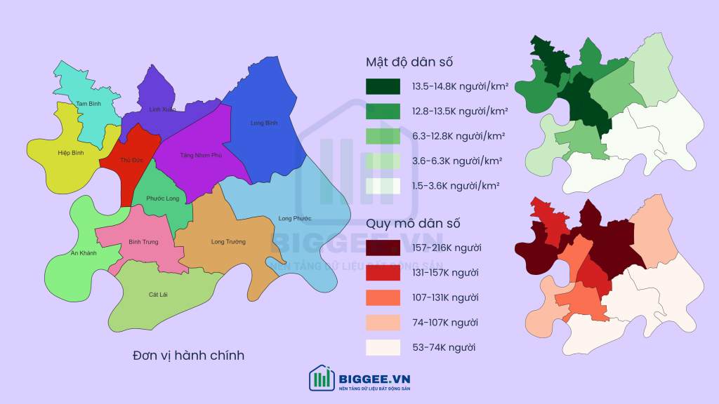 Tính đến ngày 31/12/2024, khu vực Đông Sài Gòn có quy mô dân số gần 1,4 triệu người, trong đó khoảng 50% dân số tập trung tại 4 phường: Hiệp Bình, Tăng Nhơn Phú, Linh Xuân và Tam Bình. Đây là những khu vực có mức giá đất ở trung bình, nơi cộng đồng dân cư lâu đời sinh sống ổn định qua nhiều năm.