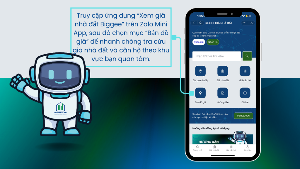 • Truy cập ứng dụng “Xem giá nhà đất Biggee” trên Zalo Mini App