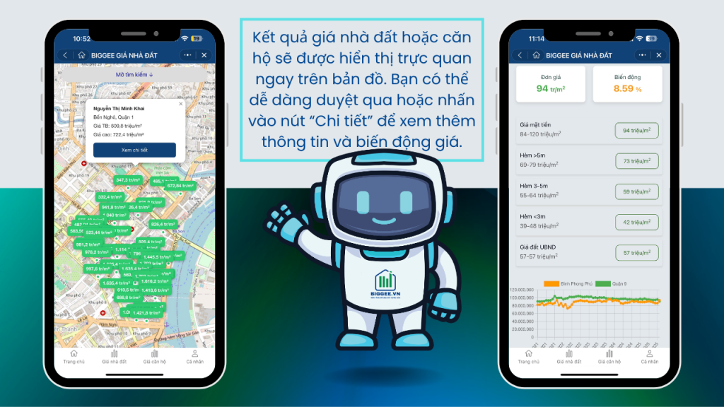 Ứng dụng “Xem giá nhà đất Biggee” có chi phí 250.000đ/năm, hỗ trợ tra cứu giá nhà đất trên toàn quốc với dữ liệu được cập nhật liên tục thông qua mô hình phân tích dữ liệu tối ưu. Đặc biệt, ứng dụng chạy trực tiếp trên Zalo, không cần tải về, giúp bạn sử dụng ngay một cách tiện lợi. Đăng ký và trải nghiệm tại đây: https://zalo.me/s/990370492587643103