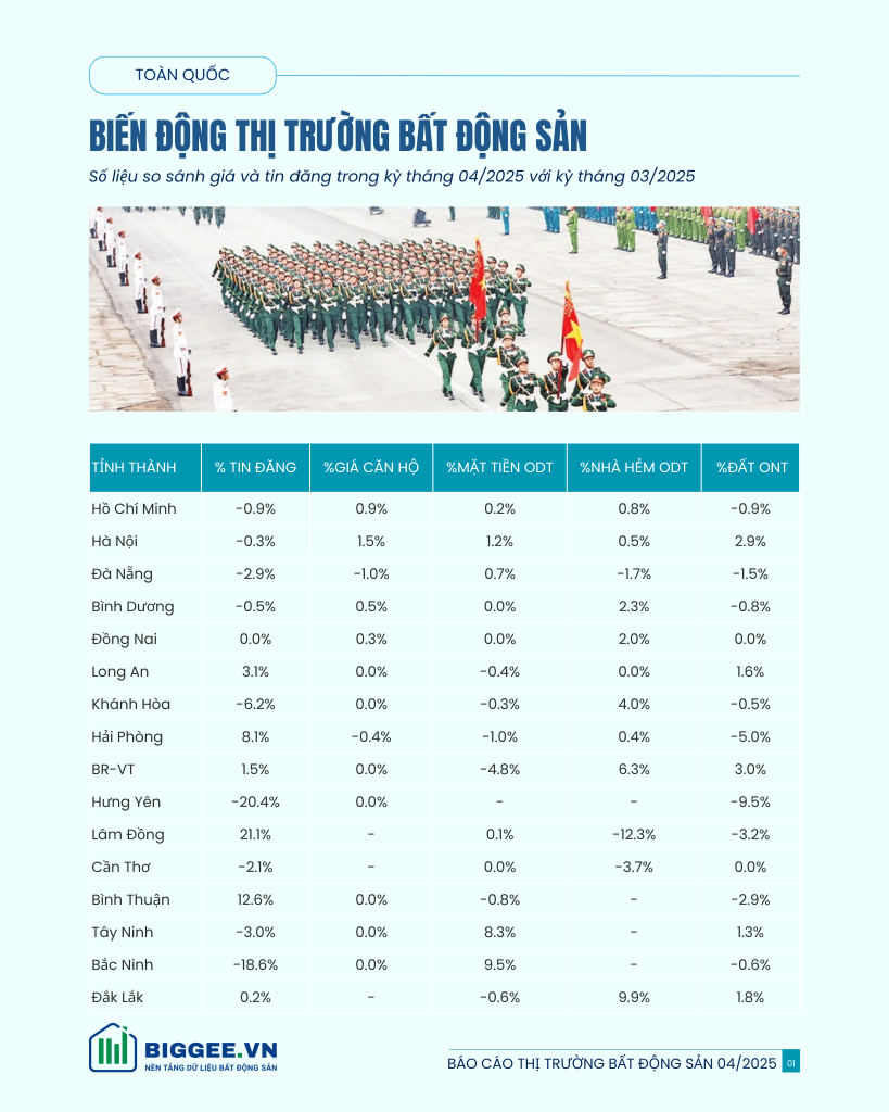 Biggee vừa cập nhật báo cáo thị trường tháng 4 – một tháng sôi động với nhiều biến động đáng chú ý trên thị trường bất động sản. Một số điểm nổi bật: