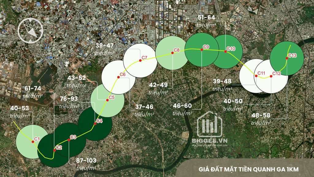 Bản đồ hướng tuyến và vị trí nhà ga đã được tích hợp lên bản đồ giá nhà đất và căn hộ tại Biggee.vn, người dùng có thể tra cứu hoàn toàn miễn phí. Báo cáo đầy đủ có bản đồ hướng tuyến, đồ họa và các số liệu thống kê về tuyến metro số 2 TP.HCM Bình Dương có tại mục Premium Report