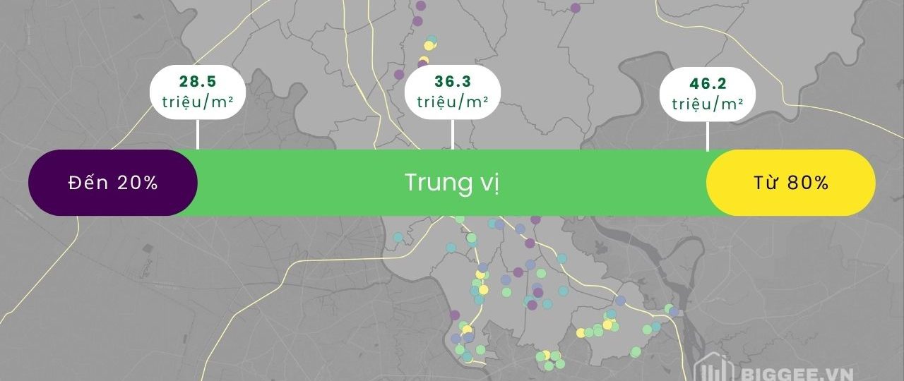 Nếu tại Hà Nội hay TP.HCM (cũ), mức chênh lệch 5–10 triệu đồng/m² thường vẫn được xem là nằm trong cùng một phân khúc, thì tại Bình Dương, khoảng chênh lệch này đã đủ để tạo ra nhiều tranh luận “thực – ảo”. Dữ liệu thị trường cho thấy mức giá trung vị hiện vào khoảng 36,3 triệu đồng/m²; nhóm 20% thấp nhất ở mức 28,5 triệu đồng/m² và nhóm 20% cao nhất khoảng 46,2 triệu đồng/m². Điều đó đồng nghĩa khoảng 60% nguồn cung căn hộ tại Bình Dương đang tập trung trong vùng giá 28,5–46,2 triệu đồng/m².