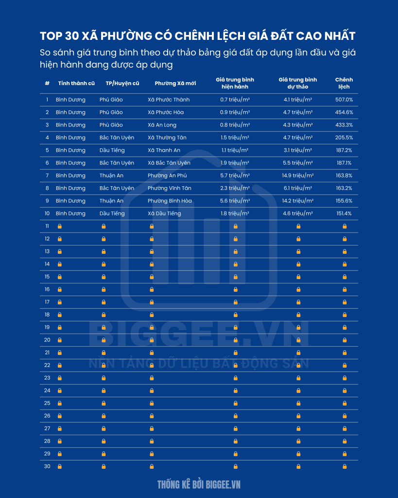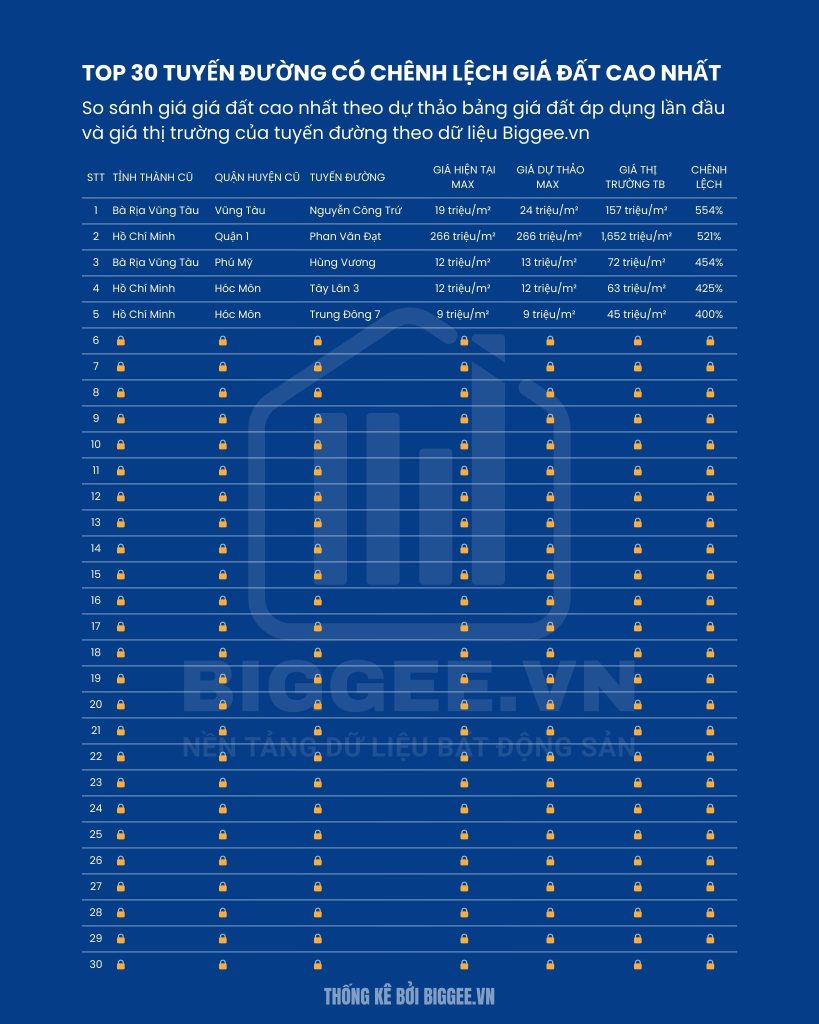 Những phường có giá đất cao nhất theo bảng giá dự thảo nhìn chung ít biến động so với bảng giá hiện hànhNhững khu vực có điều chỉnh giá mạnh nhất theo dự thảoDù bảng giá đất dự kiến có xu hướng tăng, Biggee nhận định rằng khoảng cách giữa giá đất theo bảng giá và giá giao dịch thị trường vẫn còn khá lớn. Do đó, nếu bảng giá đất chính thức được ban hành, thị trường bất động sản nhiều khả năng không có biến động đột biến trong ngắn hạn, mà chỉ tác động chủ yếu đến các nghĩa vụ tài chính liên quan đến đất đai (thuế, phí, tiền sử dụng đất) theo lộ trình.