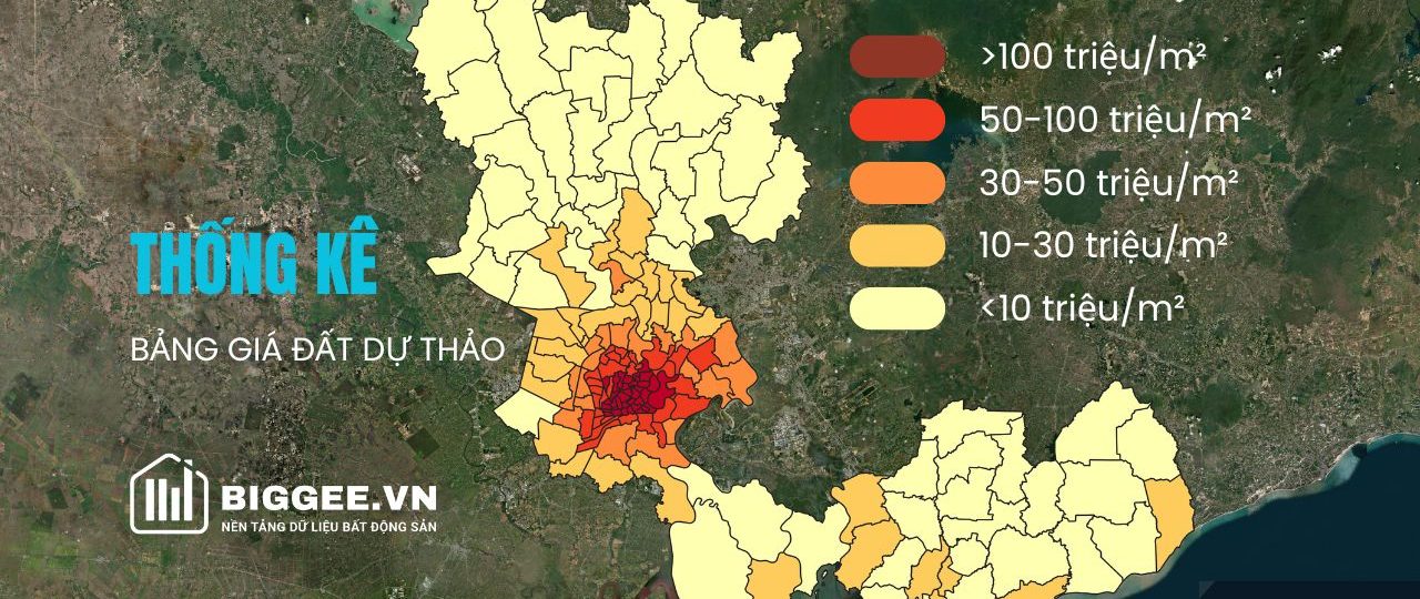 Sở Nông nghiệp và Môi trường TP.HCM đang tổ chức lấy ý kiến đối với dự thảo Nghị quyết của HĐND Thành phố về bảng giá đất mới, dự kiến áp dụng từ ngày 01/01/2026. Trên cơ sở đó, Biggee tổng hợp dữ liệu, xây dựng thống kê và đồ họa nhằm phản ánh bức tranh tổng thể về mức độ biến động giá đất trong dự thảo.