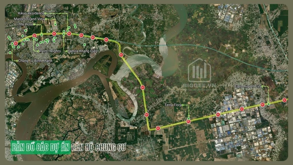 Dọc theo Tuyến đường sắt Thủ Thiêm – Long Thành, trong phạm vi bán kính 1 km quanh các nhà ga hiện có gần 40 dự án căn hộ chung cư, phản ánh khá đầy đủ bức tranh thị trường khu Đông TP.HCM và Nhơn Trạch (Đồng Nai) — từ phân khúc hạng sang, cao cấp đến nhà ở xã hội (NOXH). Khi tuyến đường sắt được triển khai, yếu tố kết nối hạ tầng sẽ là một điểm cộng đáng kể. Tuy nhiên ở thời điểm hiện tại, phần lớn các dự án này gắn liền với nhu cầu ở thực hơn là kỳ vọng khai thác hoặc di chuyển đến sân bay. Việc phân nhóm được thực hiện chủ yếu dựa theo mức giá bán.